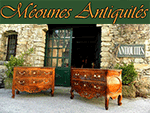 Installé depuis 1966 dans le Sud de la France, Méounes Antiquités propose un choix de mobilier régional Français de qualité du XVIIe au XIXe siècle. Nous sélectionnons les plus belles pièces: tables de ferme, commodes provençales, cartels, bureaux, objets d'art...